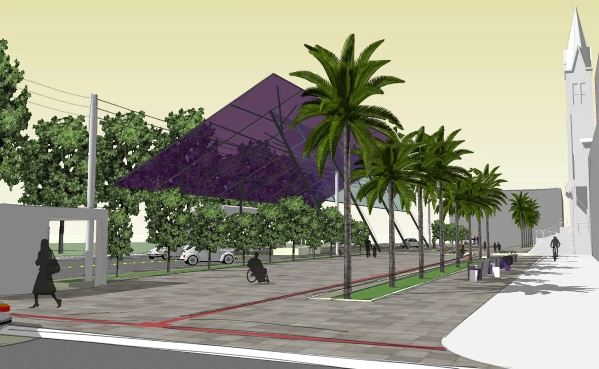 O projeto arquitetônico foi elaborado por Giovanni Bettio, da Prefeitura de Soledade, e já está cadastrado no Governo do Estado. A estrutura prevista contempla cobertura para feiras da agricultura familiar, espaço para eventos culturais, nova parada de ônibus junto e uma saída segura para pedestres da Igreja Matriz, eliminando o atual acesso direto pela rua e escadaria.